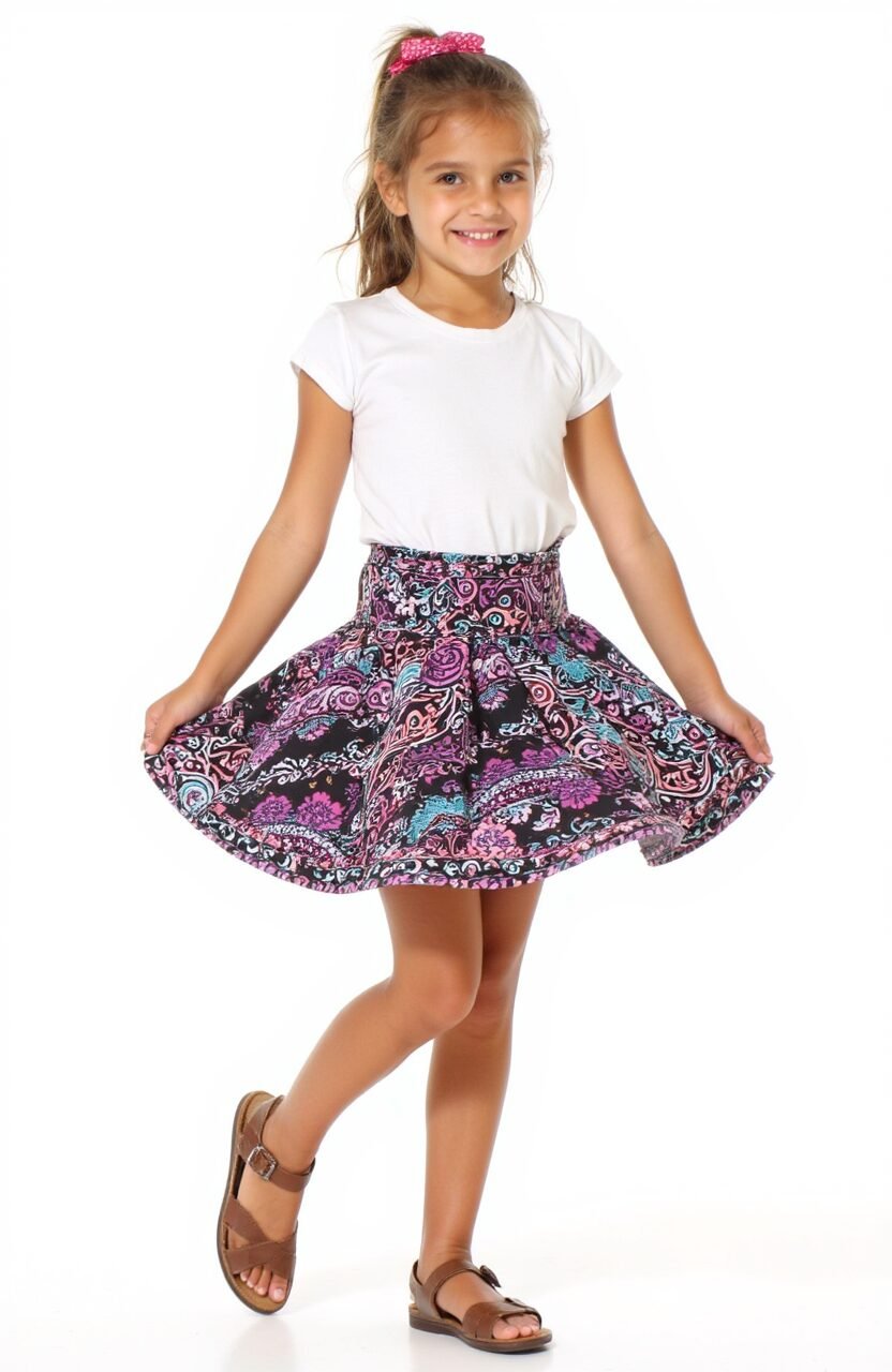Match it with a simple t-shirt for a balanced outfit. This skirt is an excellent choice for any little fashionista. It’s versatile and budget-friendly, perfect for everyday wear.