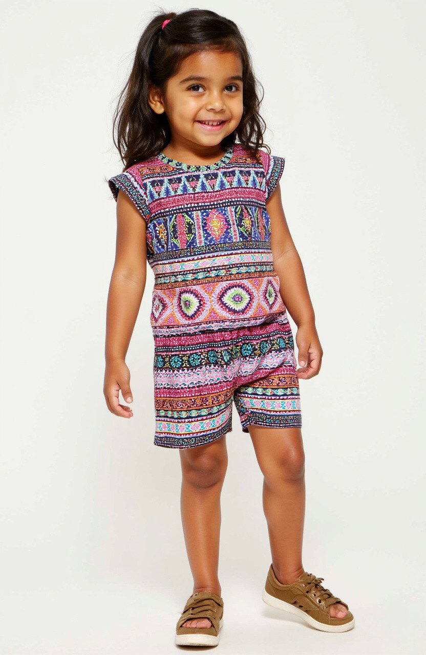 Think of a romper that’s as playful as a summer’s day. This batik romper combines style with freedom of movement, ideal for active kids. The vibrant patterns catch the eye and spark joy.