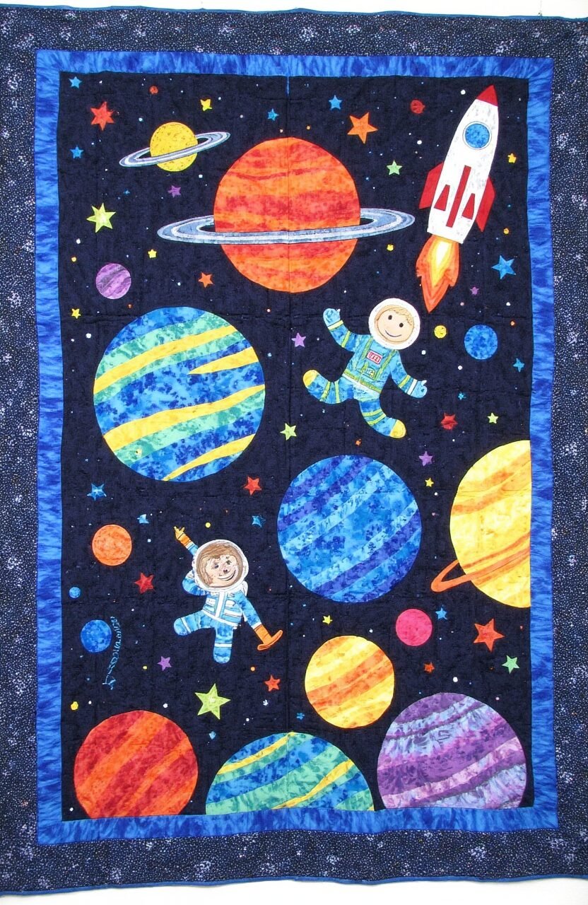 Blast off into outer space with the Space Adventure quilt. Featuring planets, rockets, and astronauts, this quilt transports kids to a galaxy of fun.