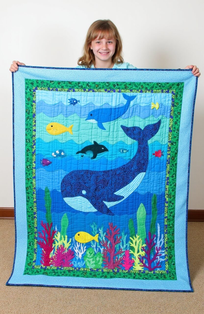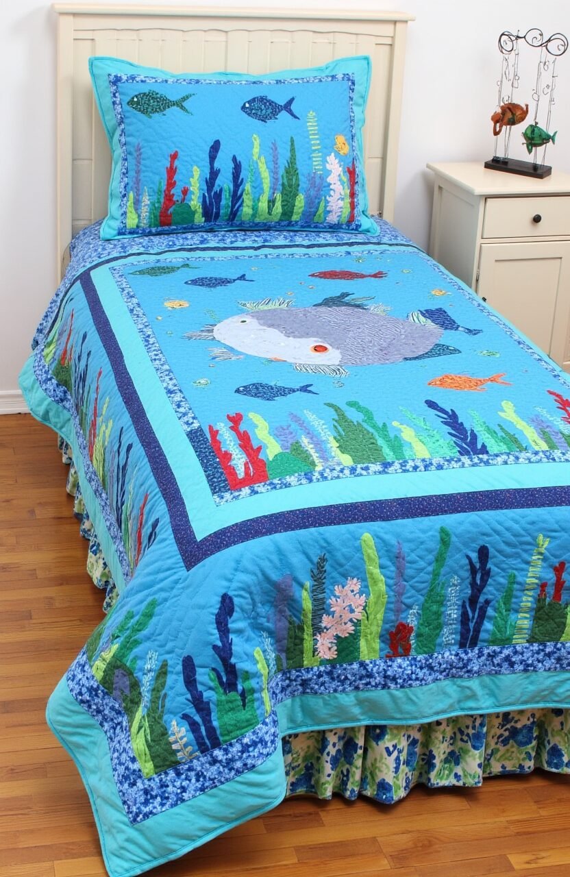 This quilt is perfect for kids who love the ocean and its creatures. Its vibrant blues and greens create a calming environment.
