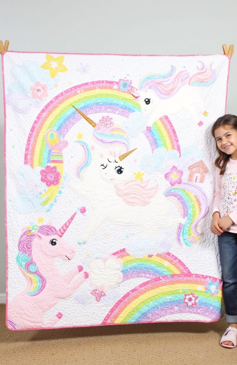 This quilt is perfect for kids who love fantasy and magic. Its pastel colors and dreamy designs create a fairytale atmosphere.