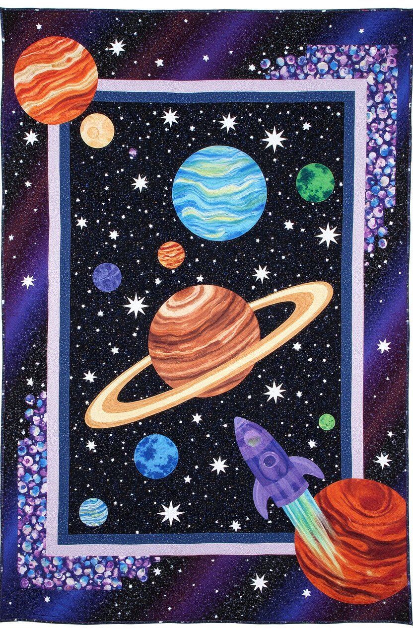 This quilt is perfect for kids who dream of space travel. Its vibrant colors and dynamic patterns inspire exploration and imagination.