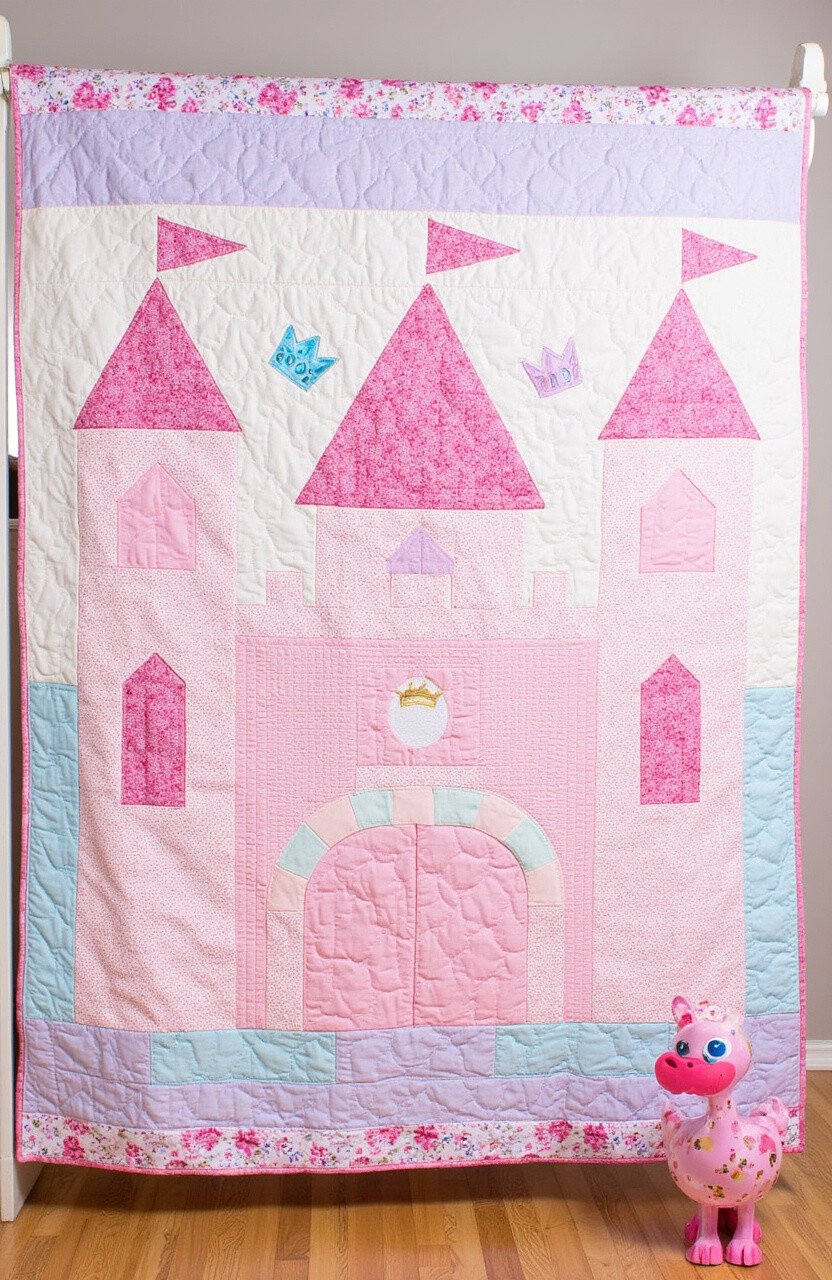 The Princess Castle quilt is fit for royalty. With batik castles, crowns, and princesses, it’s a regal addition to any little girl’s room.