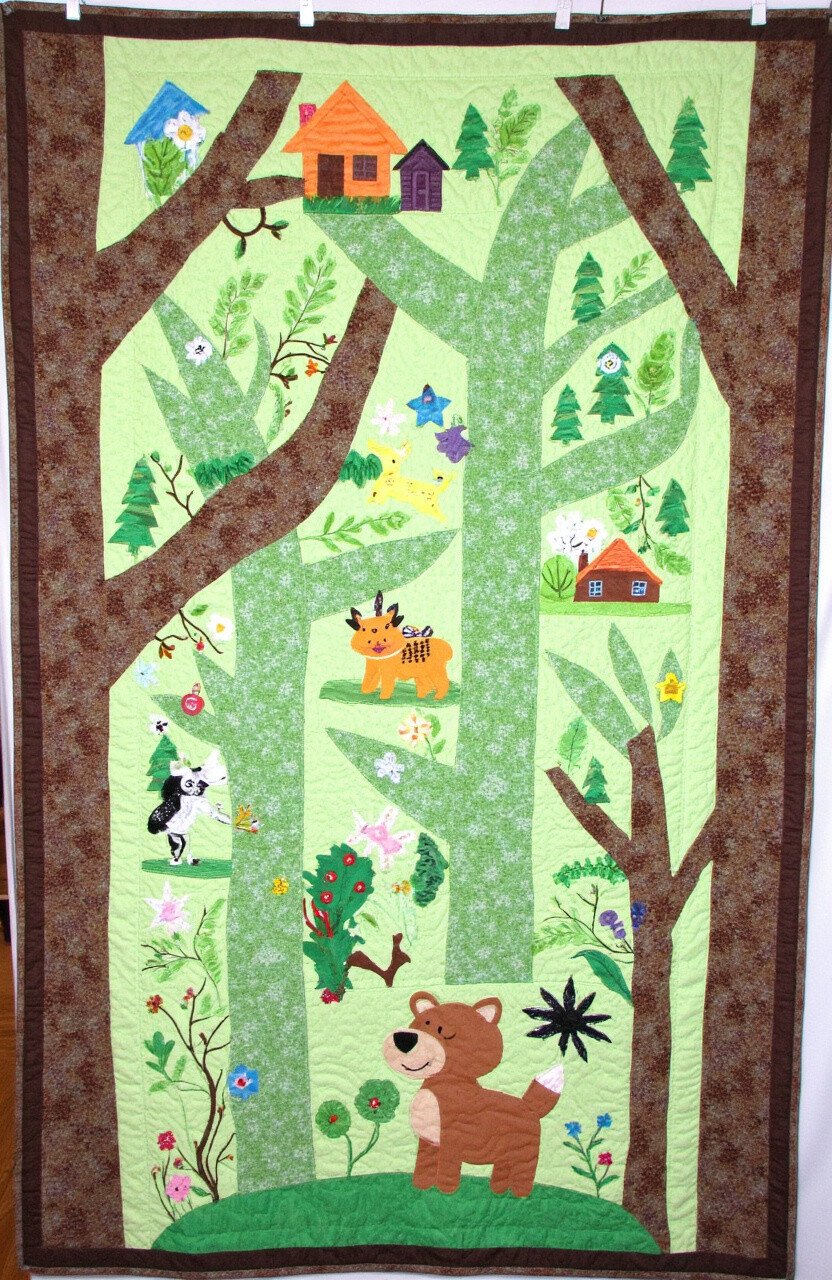 This quilt is perfect for sparking imagination and creativity. Its soothing greens and browns create a peaceful atmosphere for bedtime stories.