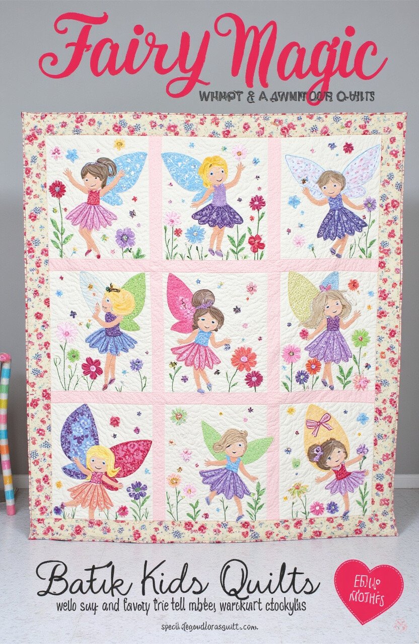Step into a world of enchantment with the Fairy Magic quilt. With batik fairies, flowers, and sparkles, it’s a whimsical wonderland.
