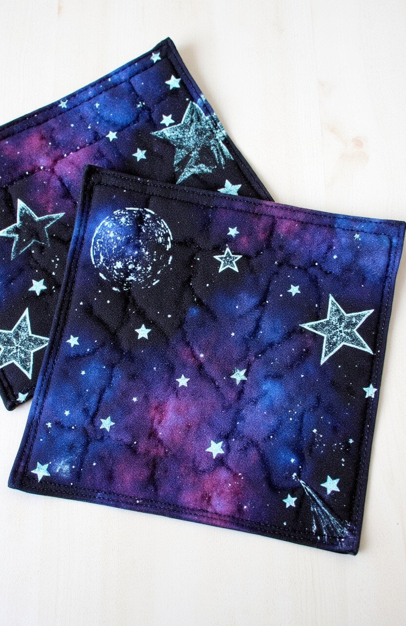 Gaze at the stars with these cosmic-themed batik pads. Their deep colors and star patterns create a magical atmosphere. Perfect for those who love the night sky.