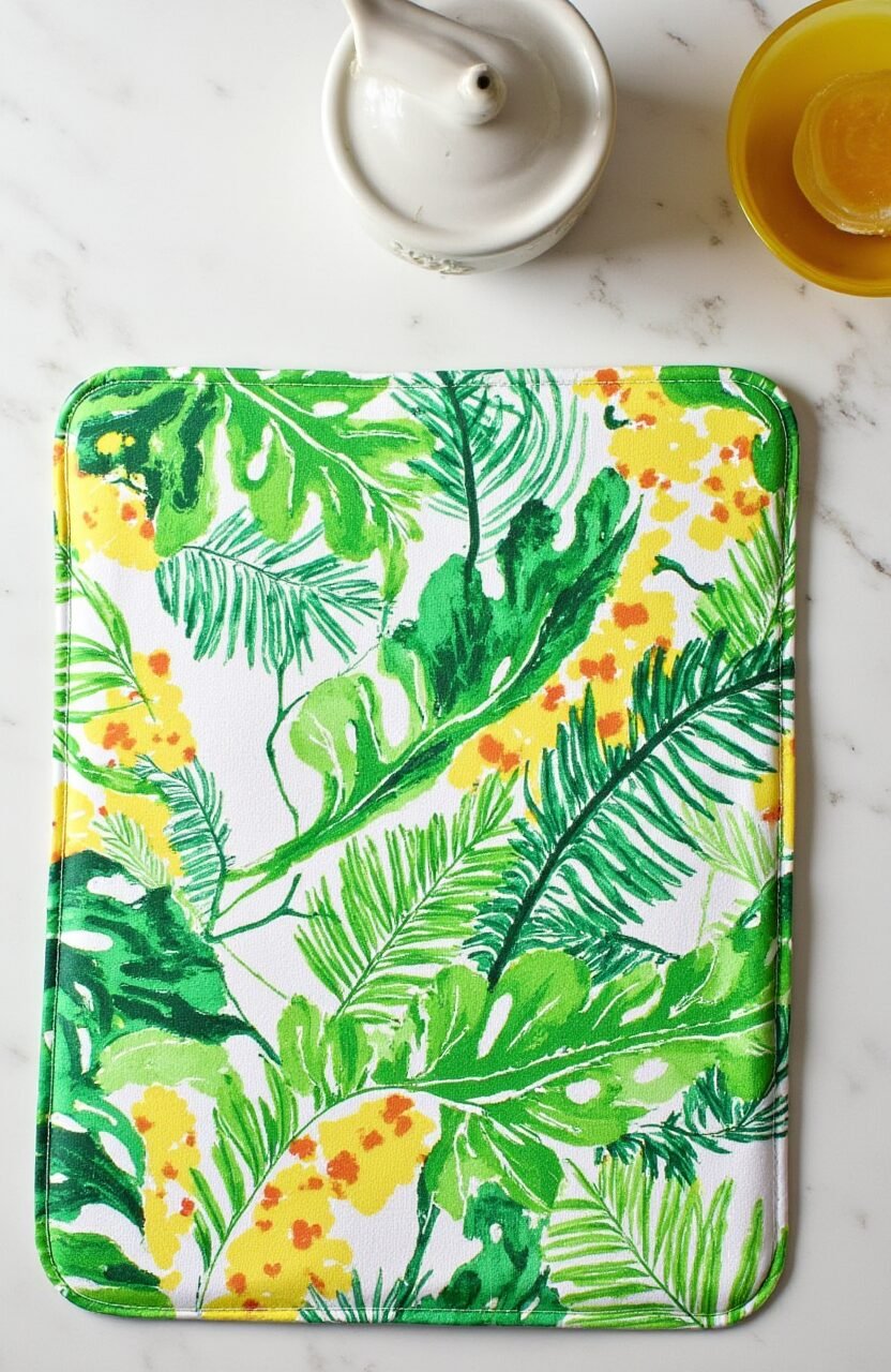 Envision lush greens and sunny yellows capturing the essence of a tropical island. This kitchen pad will make you feel like you’re on a vacation every time you cook. Its vibrant colors are sure to brighten your mood.