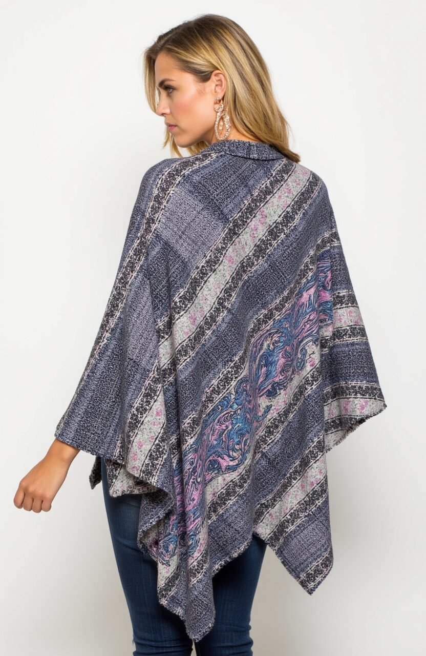 A stylish poncho made from batik knit fabric is perfect for layering. It’s great for transitioning between seasons.