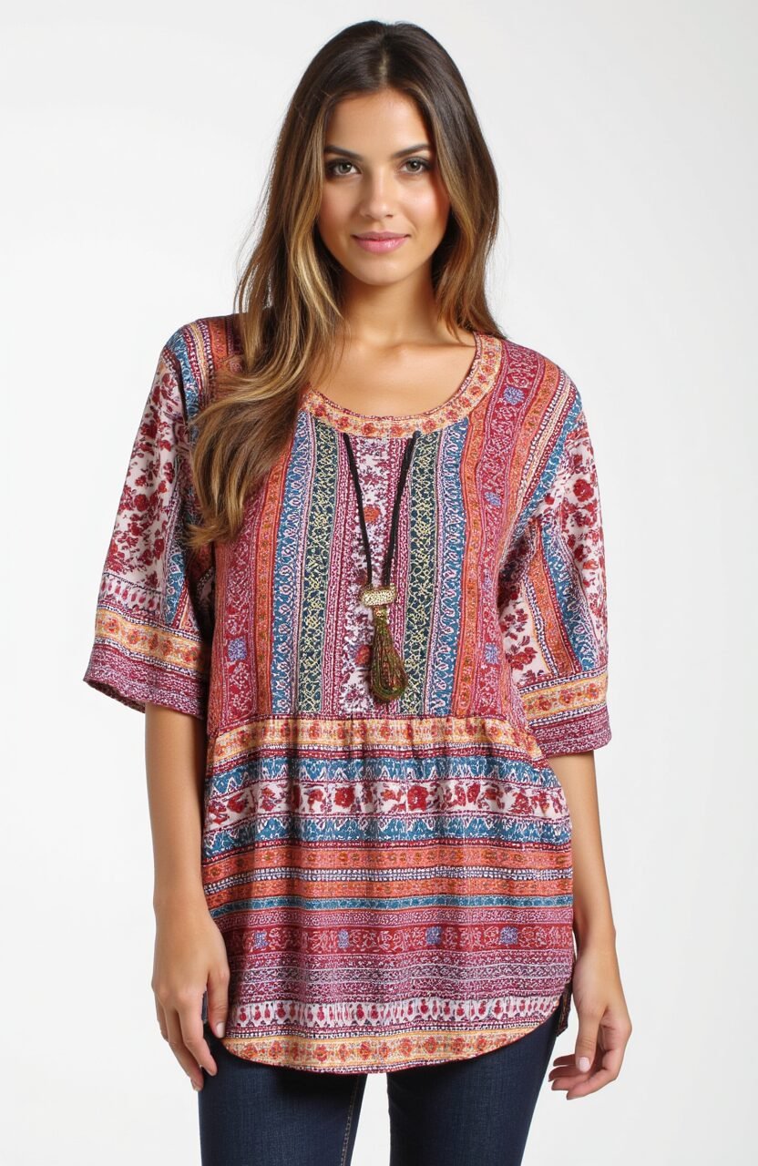 Batik knit fabric tunics are perfect for achieving a bohemian look. They’re comfortable and stylish, ideal for casual wear.