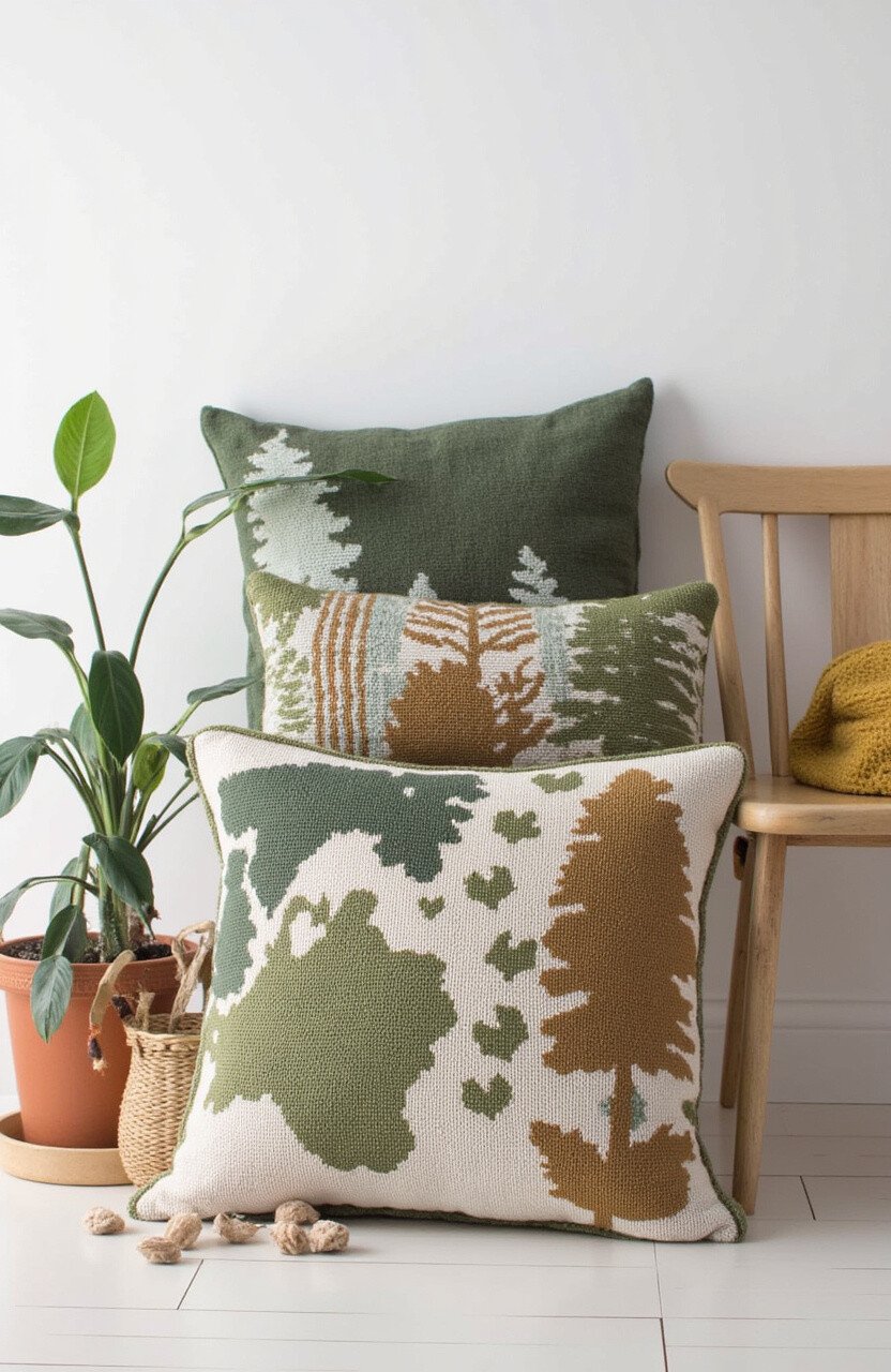 Bring the tranquility of the woods into your home with the Earthy Forest Whispers cushion. Rich greens and browns create a calming effect, perfect for relaxing after a long day.