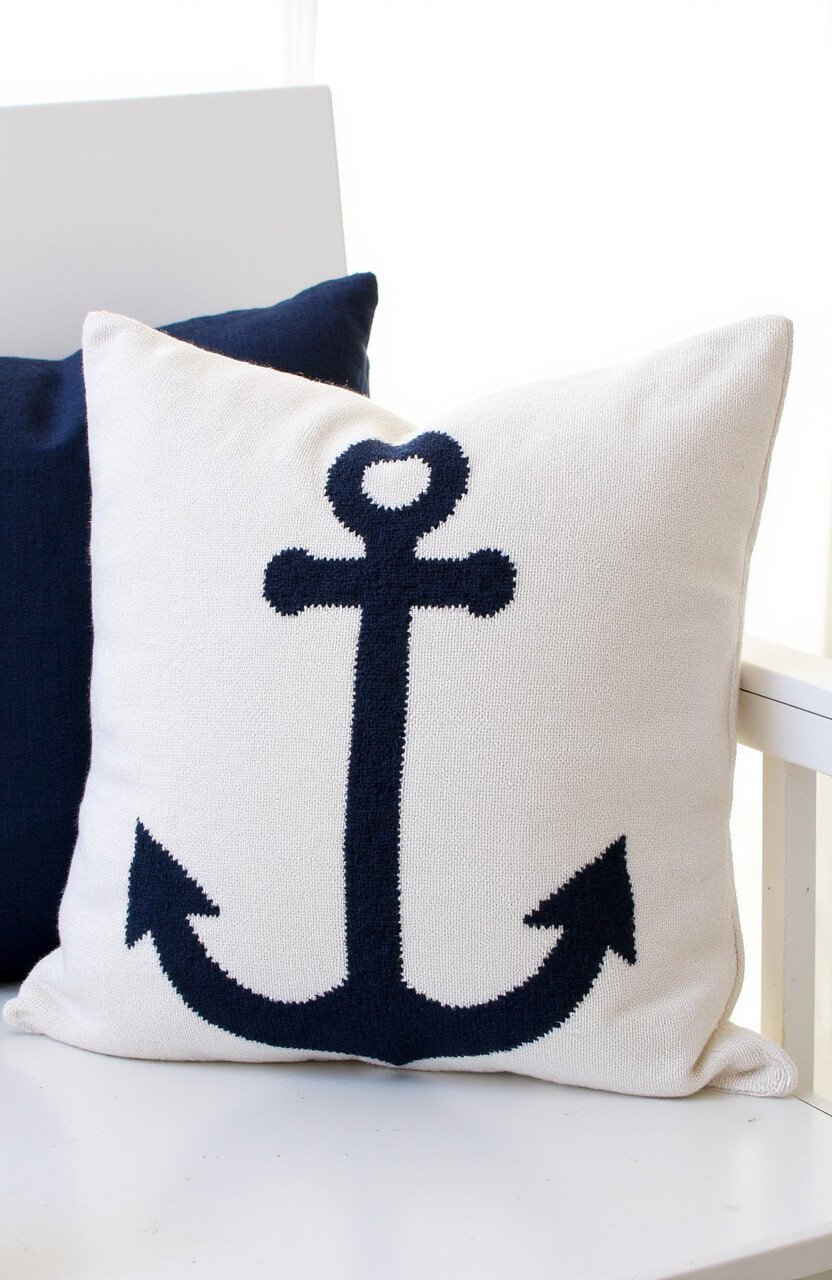 Set sail with the Nautical Anchors Aweigh cushion. Its navy blues and crisp whites are perfect for a sea-inspired theme.