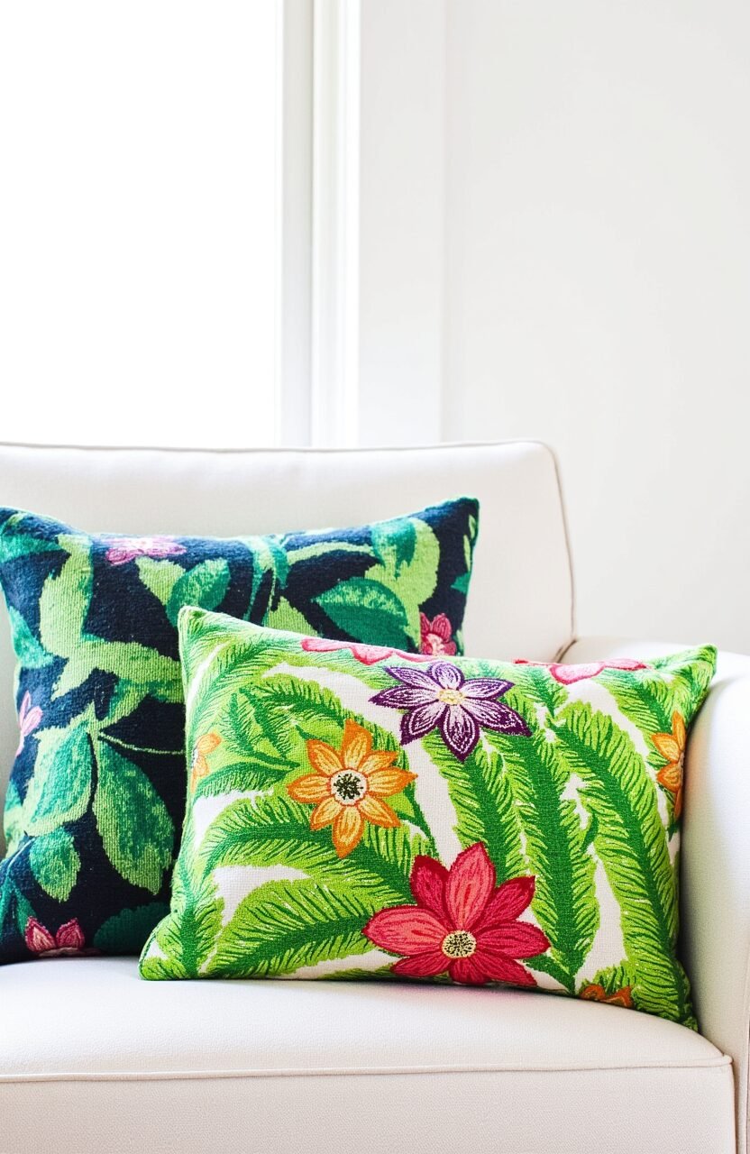 Feel like you’re on a permanent vacation with the Tropical Paradise Escape cushion. Bright greens and vibrant floral patterns transport you to a sunny getaway.