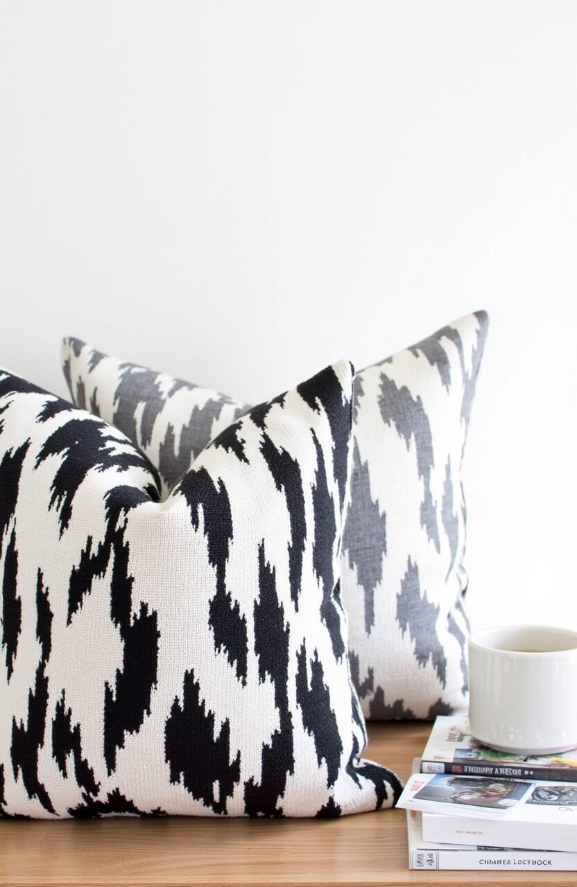 Simplify your space with the Monochrome Geometric Chic cushion. Its black and white patterns are modern and sleek, perfect for a minimalist look.