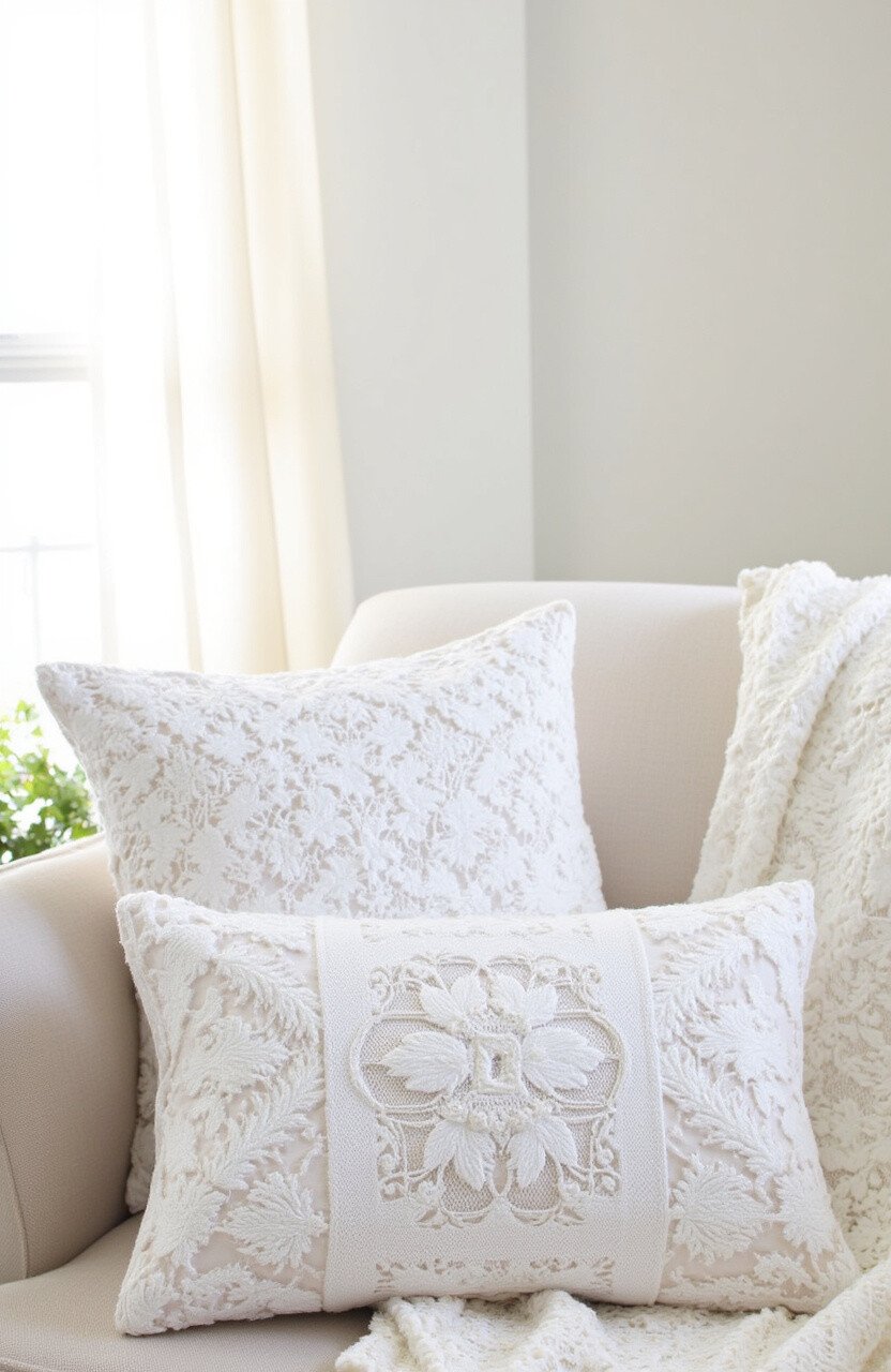 The Delicate Lace Elegance cushion brings a touch of vintage charm to your home. Its intricate lace patterns and soft whites are timeless and graceful.