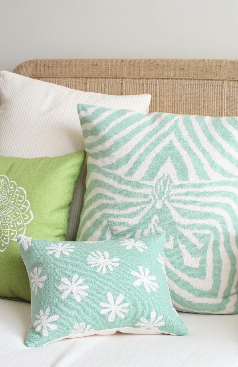 Find your calm with the Zen Garden Serenity cushion. Its soft greens and gentle patterns create a peaceful, meditative atmosphere.