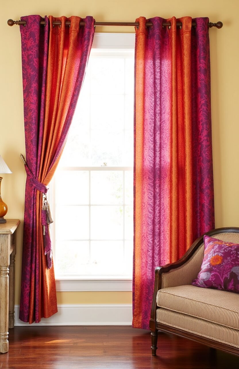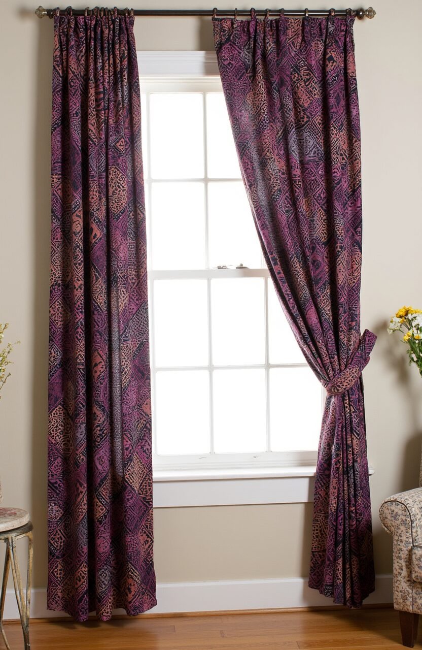 Capture the magic of a sunset with batik curtains in warm oranges, pinks, and purples. These vibrant colors breathe life into any room.