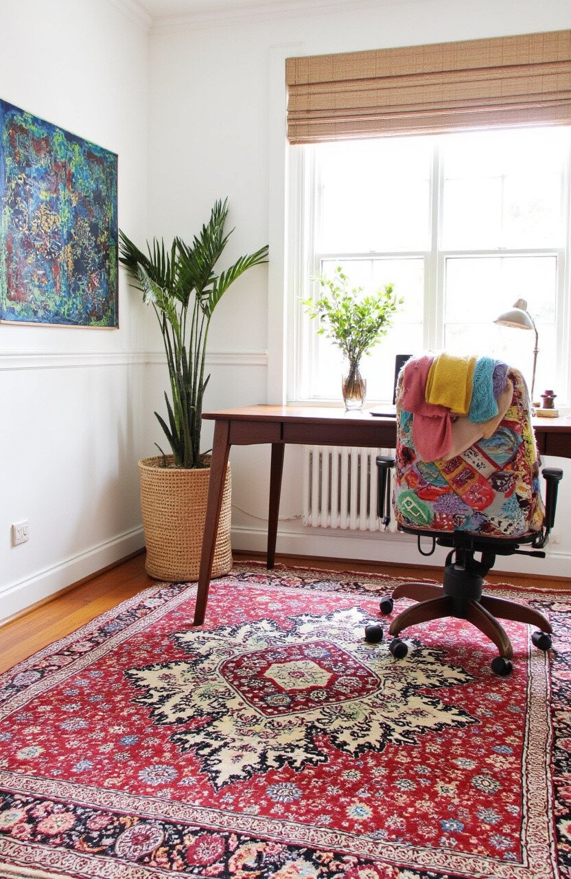 Who says workspaces have to be boring? A Batik rug can add a splash of inspiration to your home office.
