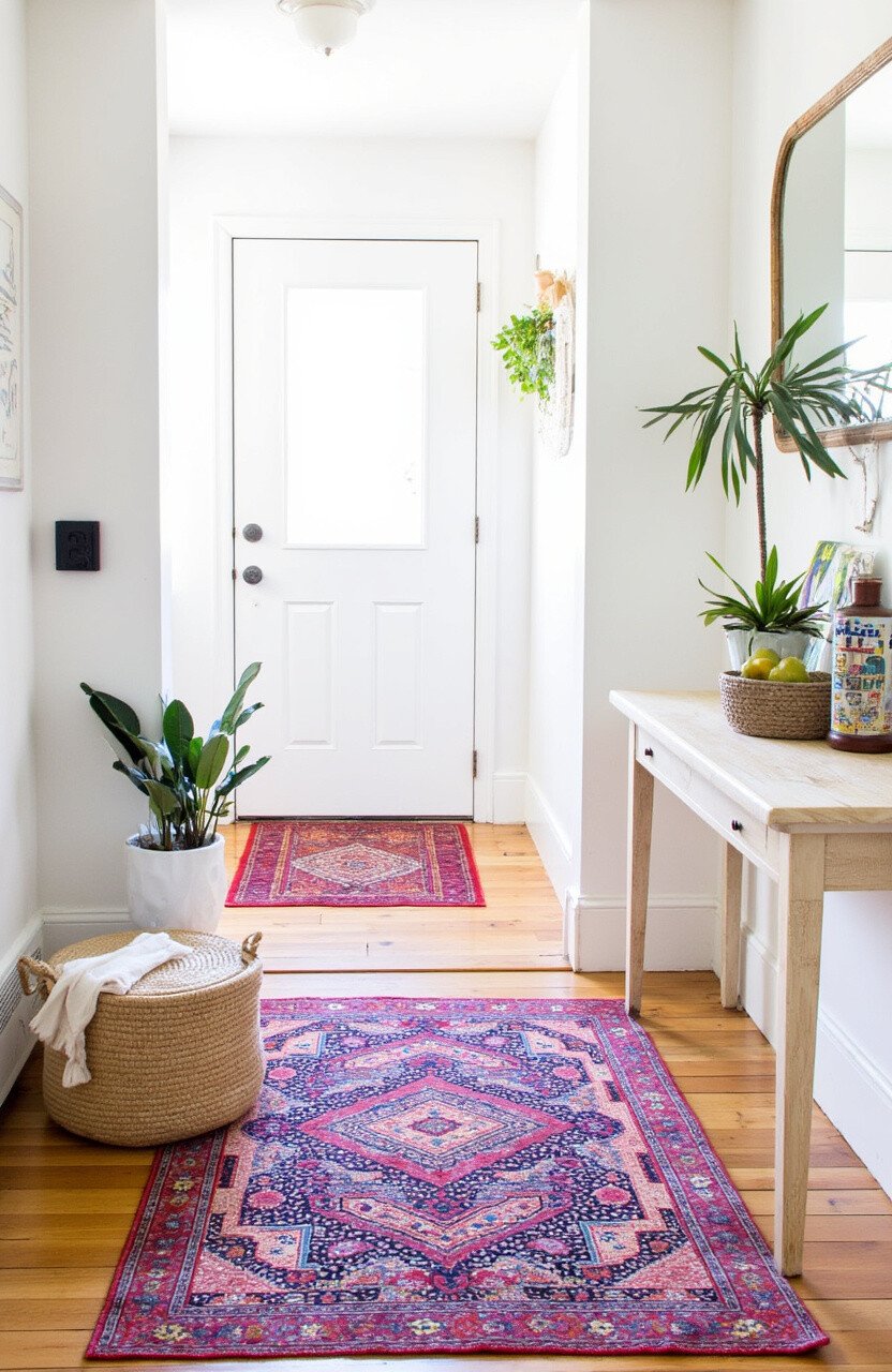 Its vibrant patterns catch the eye, making guests feel at home as soon as they walk in. Plus, it sets the tone for the rest of your decor.