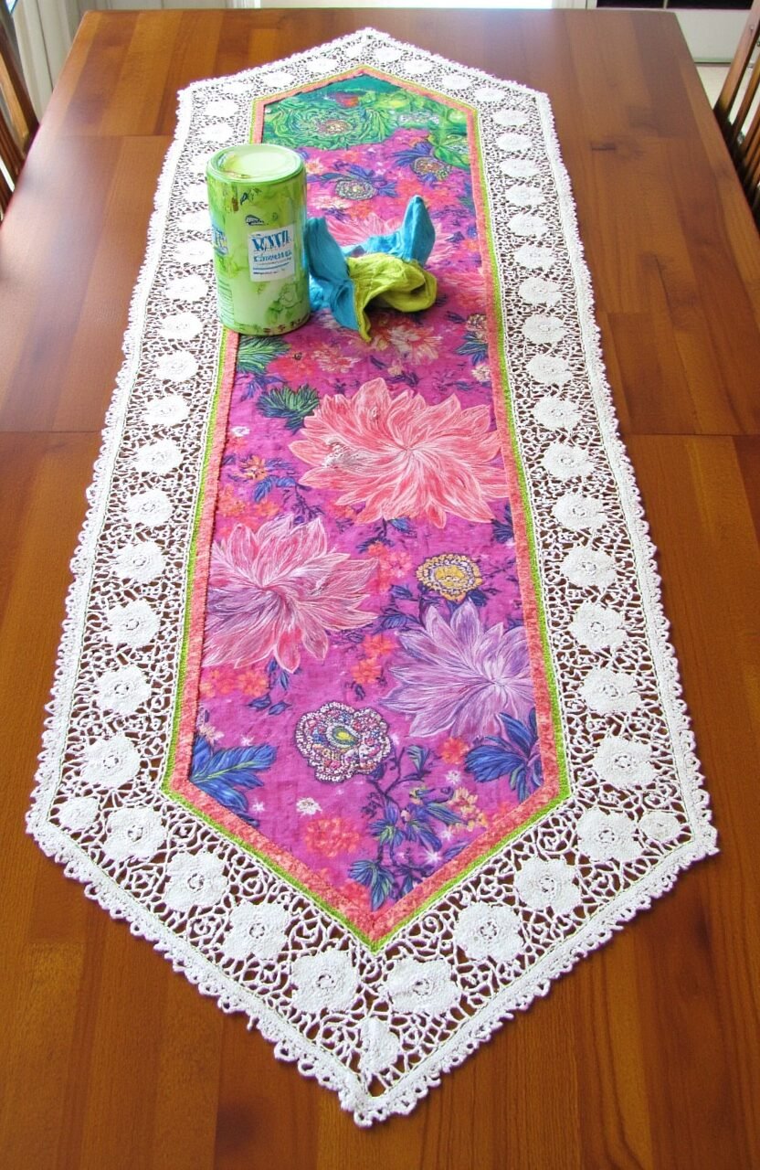 Experiment with different lace patterns and batik colors. Add a border for a polished look. This project is both functional and decorative.