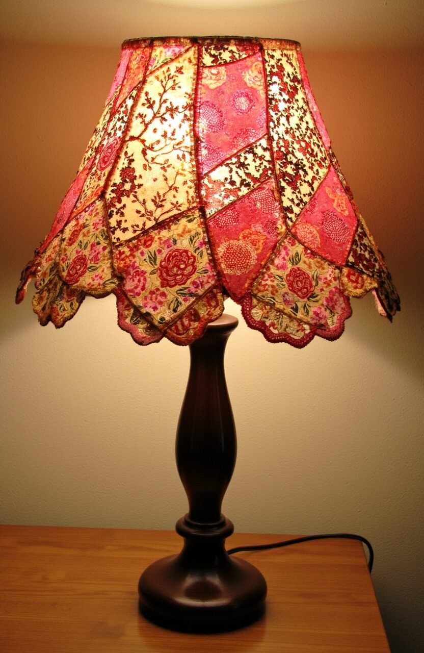 Lampshades with batik lace appliqué can transform the ambiance of any room. The lace patterns play with light, creating beautiful shadows. These lampshades add a touch of elegance and warmth.
