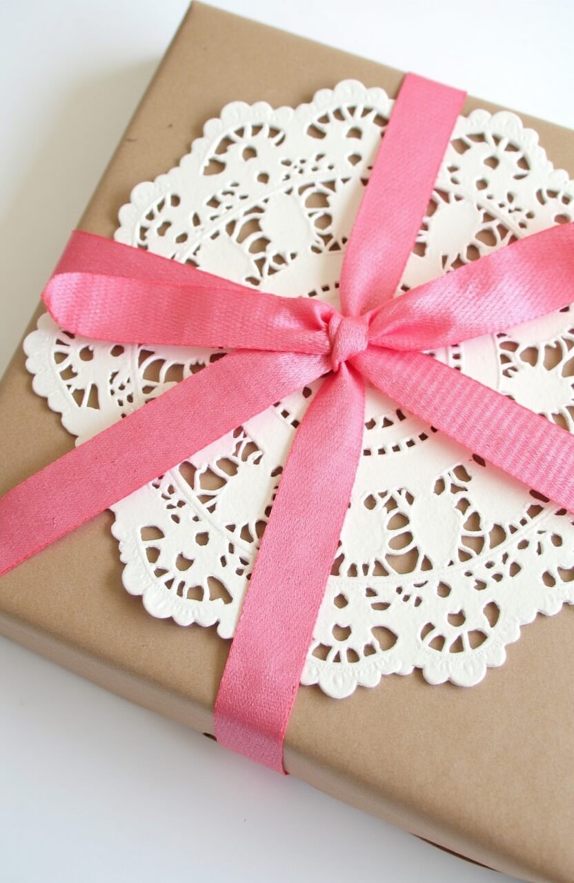 Wrap the doily around the gift and secure with a ribbon. It adds a personal and creative flair. This is especially great for weddings or birthdays.