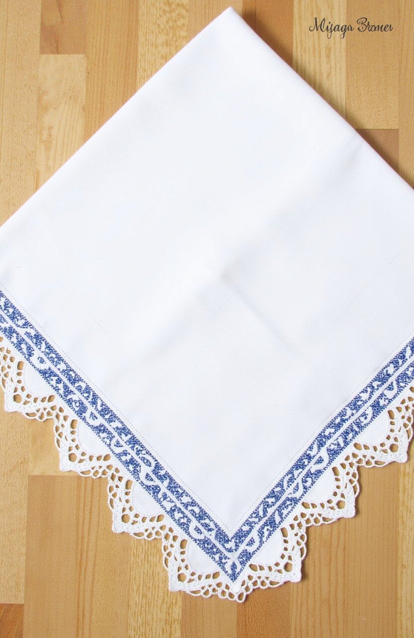 Enhance a plain handkerchief with batik lace trimming for a charming accessory. The lace adds a decorative edge that makes it special.