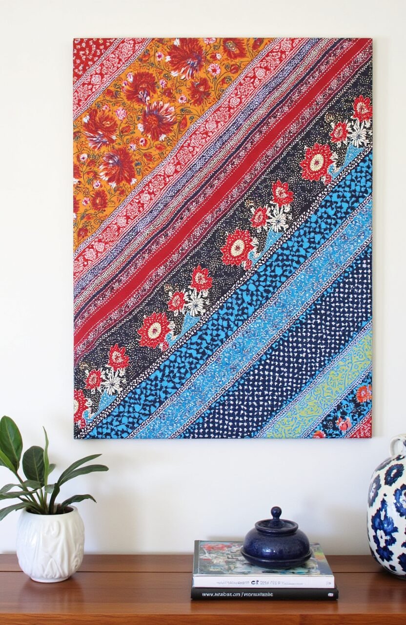 This is a simple DIY project that can refresh an old lampshade. It’s a creative way to introduce batik into your home without making permanent changes.
