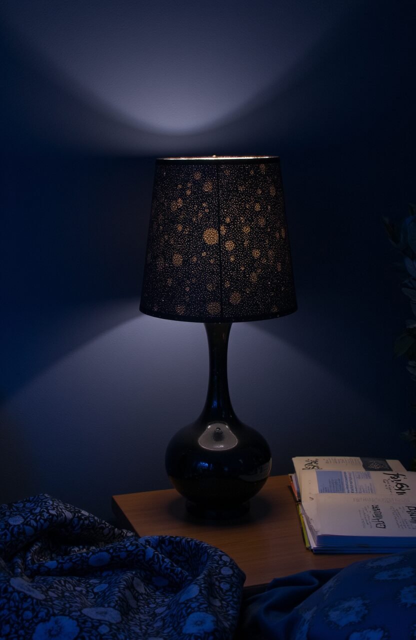 Dark blue or black batik lamp shades with starry patterns bring the night sky indoors. Perfect for dreamers and stargazers alike. They create a mysterious and calming environment.