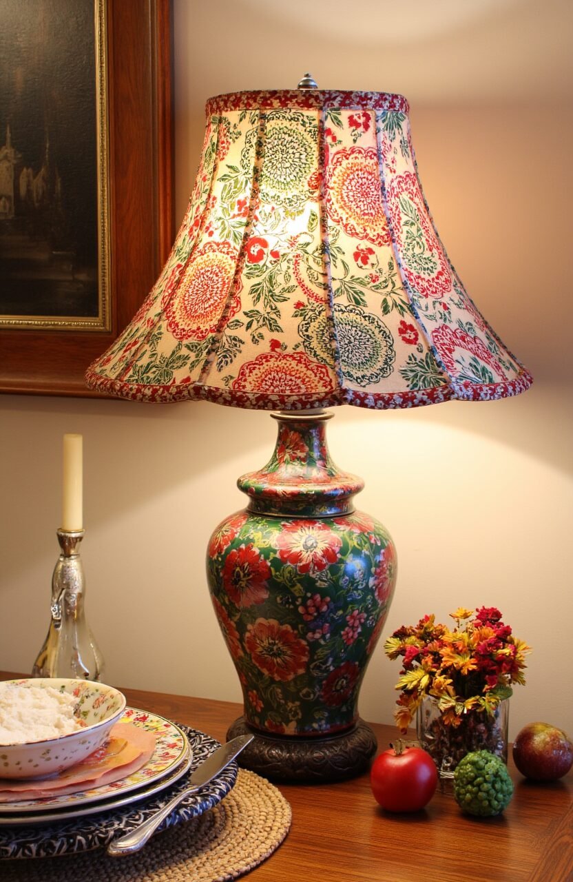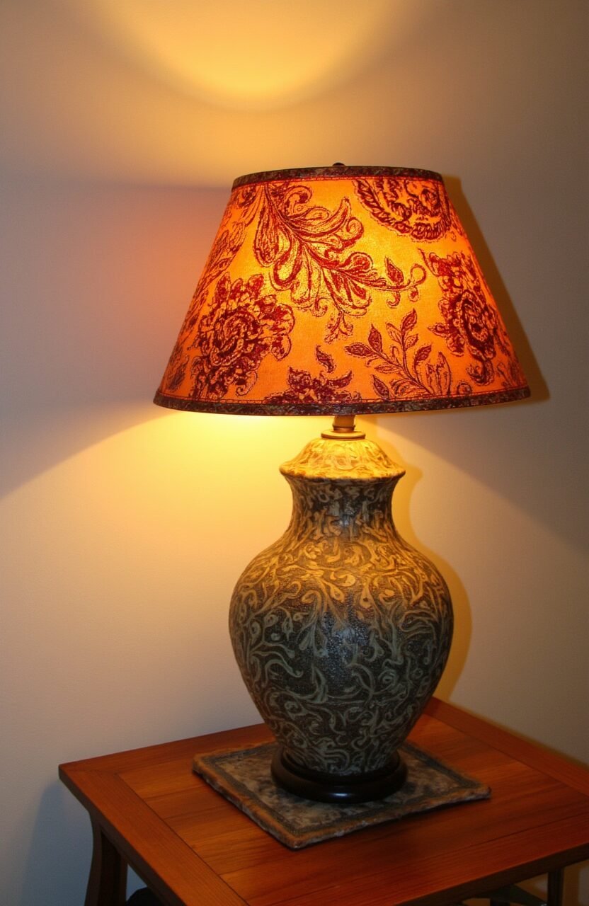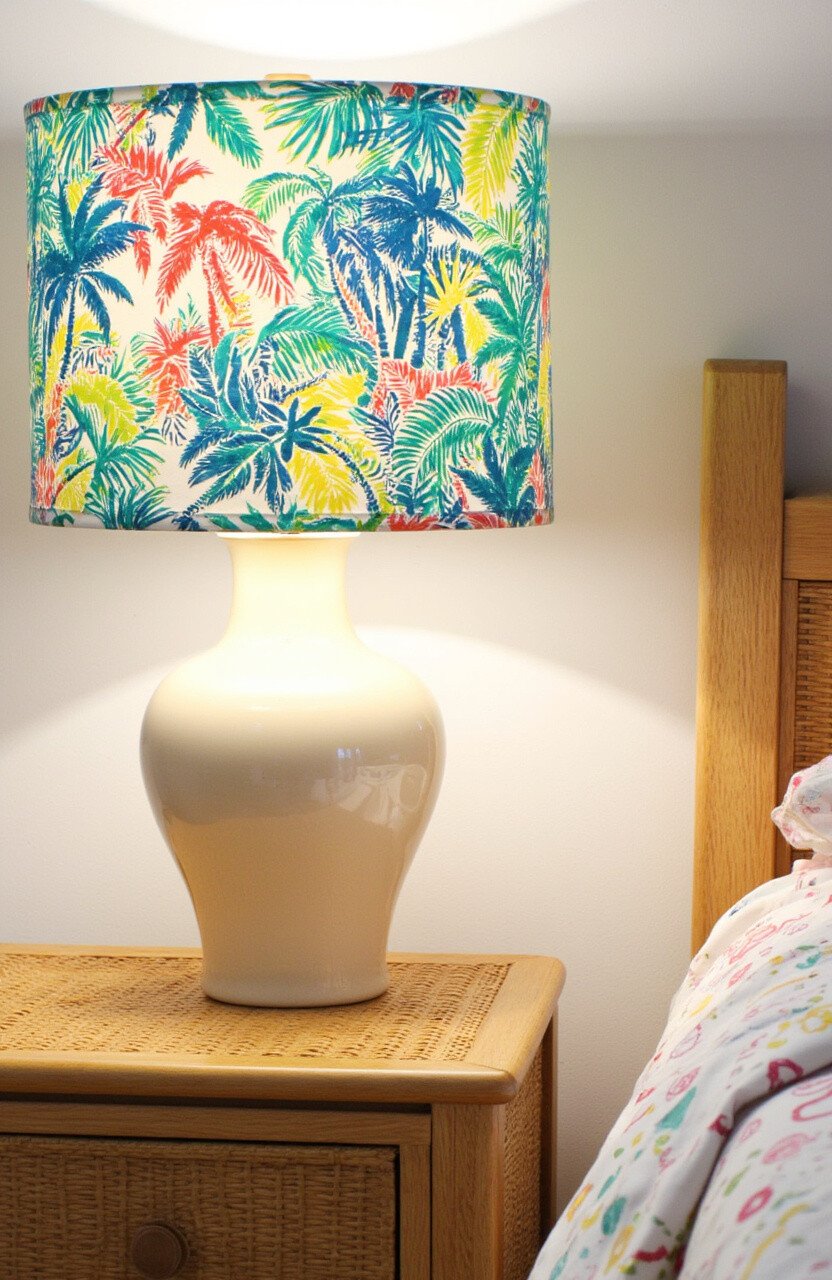 Bring the beach to your living room with batik lamp shades featuring tropical patterns. Think palm trees, sunsets, and ocean waves. The bright colors will transport you to a relaxing paradise every time you switch on the light.