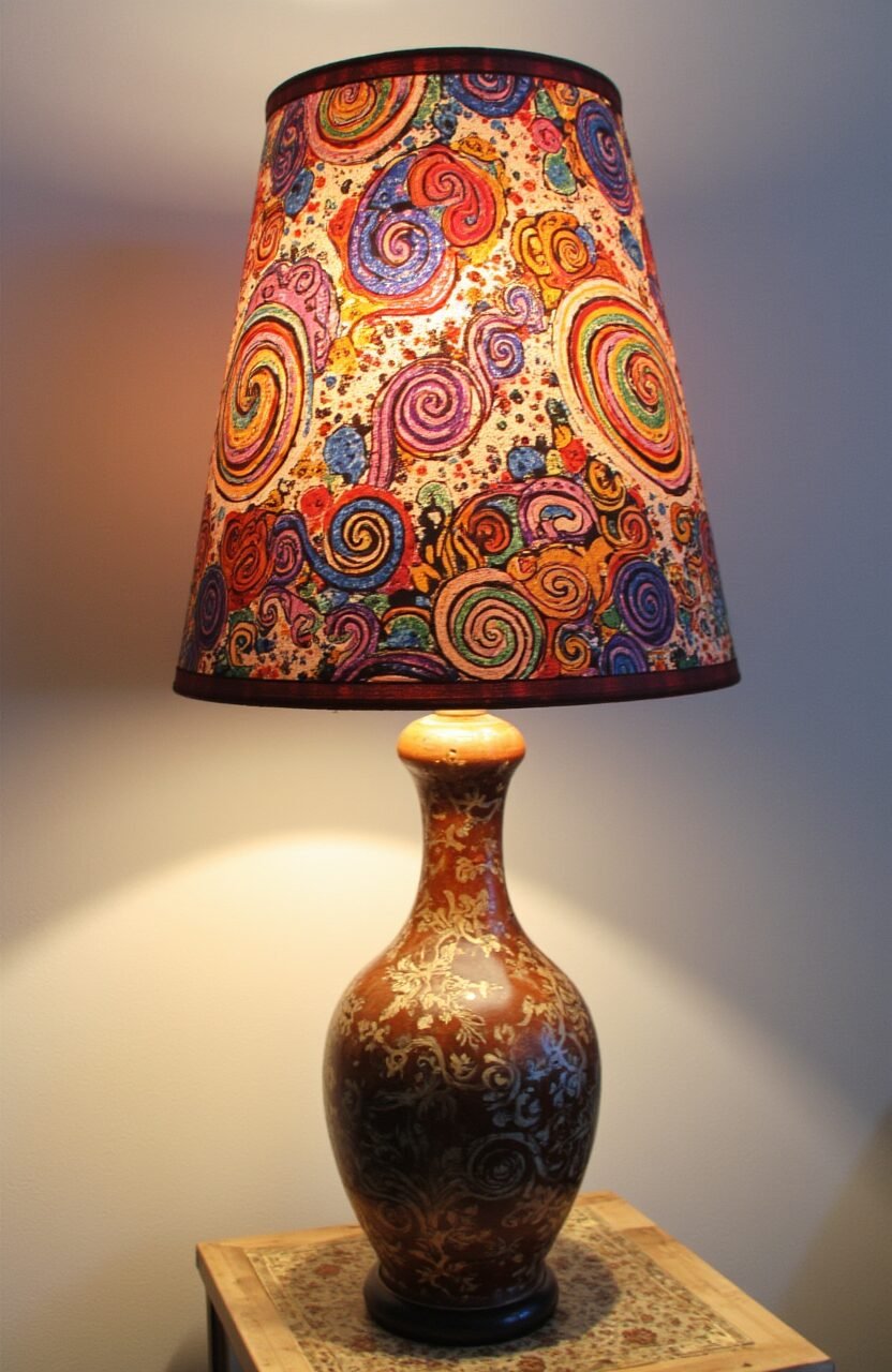 Batik lamp shades with swirling patterns create a sense of movement and energy. Perfect for lively spaces like living rooms or kitchens.