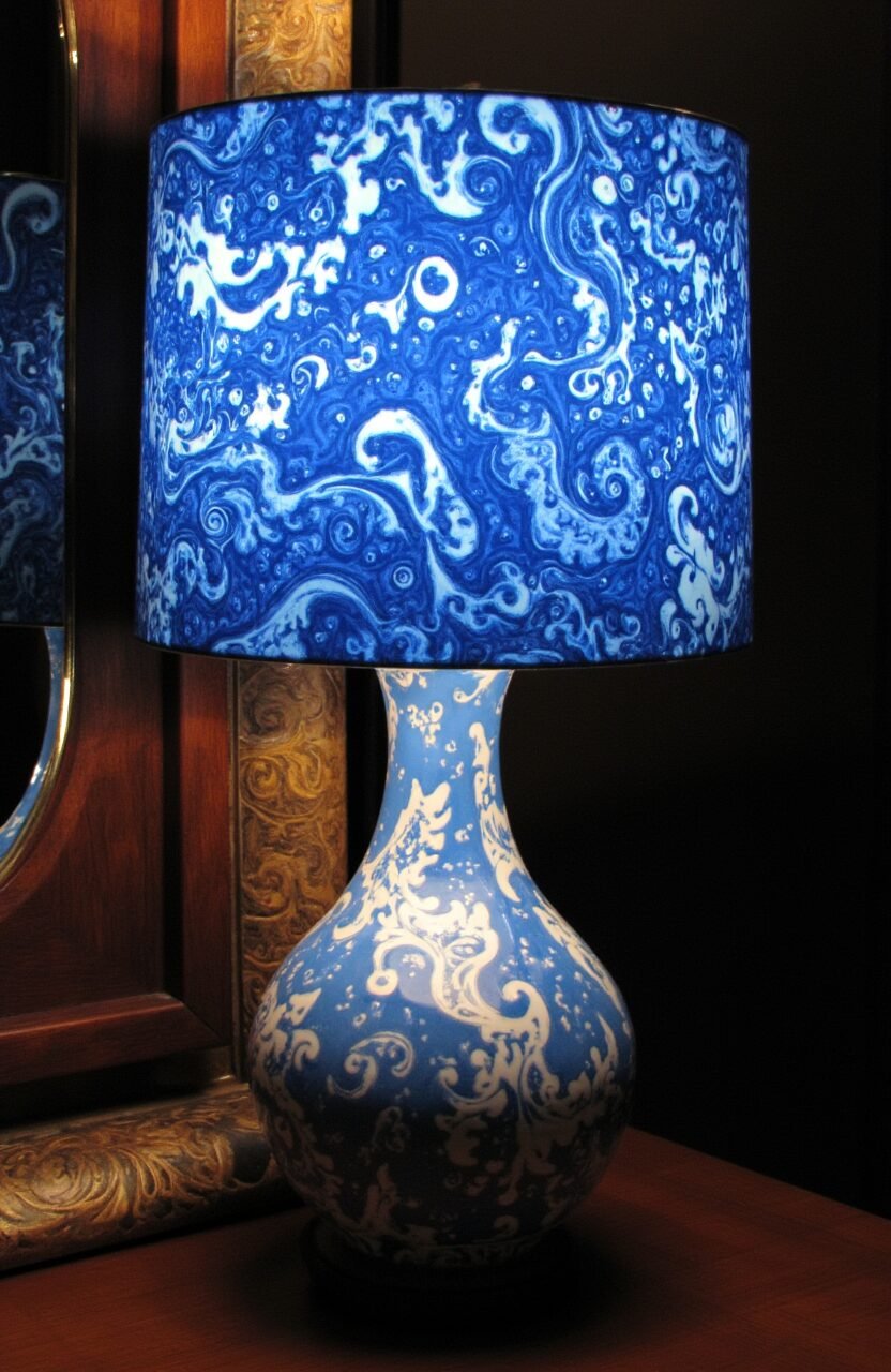 Imagine shades of blue and green swirling together like ocean waves. Batik lamp shades in oceanic colors are soothing and refreshing. Perfect for bathrooms or bedrooms.