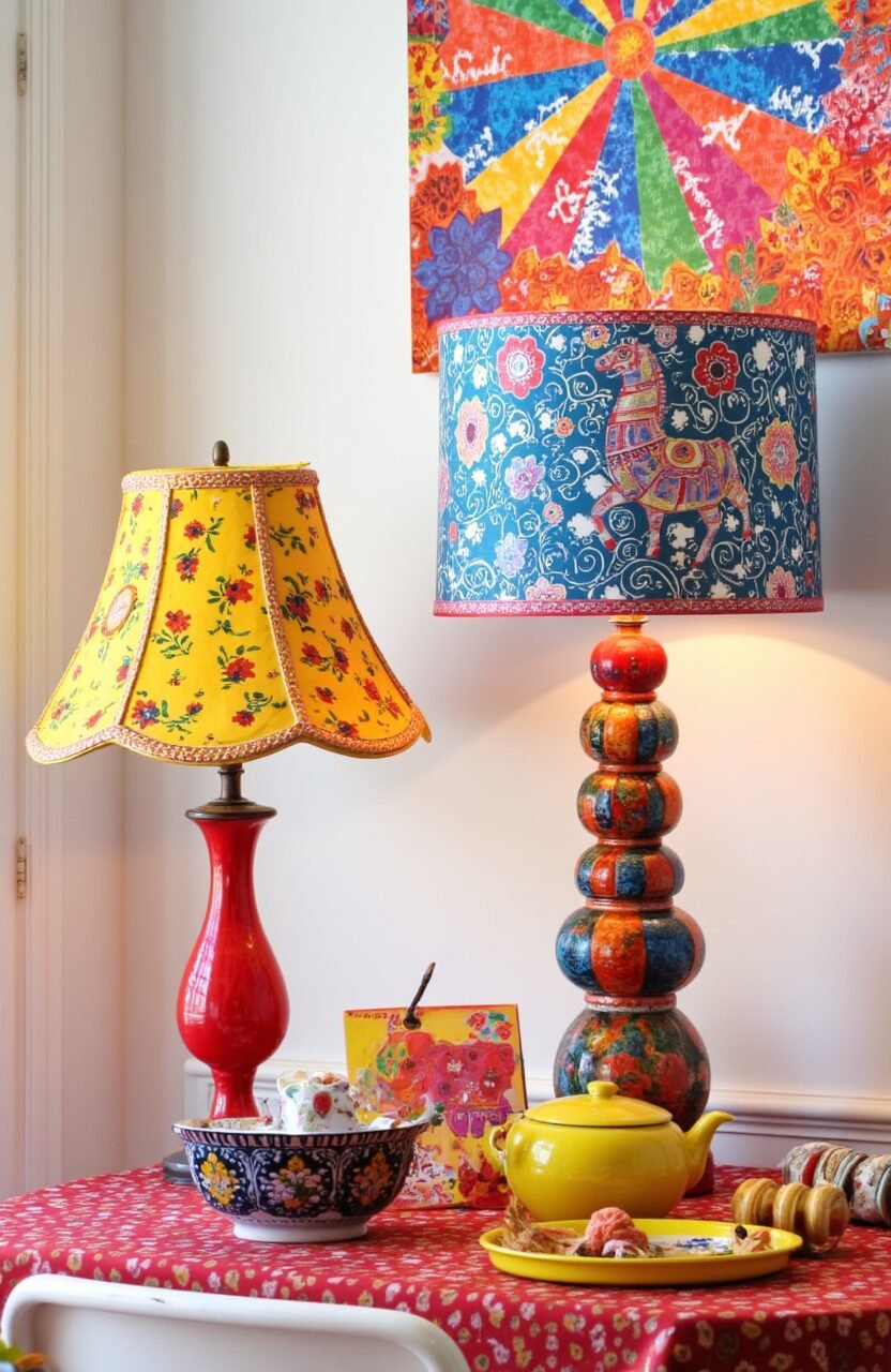 Bring the excitement of a carnival to your home with batik lamp shades in bright, bold colors. Perfect for playrooms or party spaces.