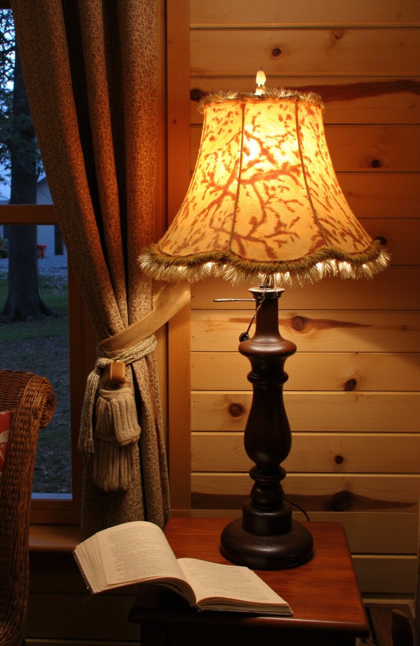 Bring the warmth of a cabin to your home with batik lamp shades in warm, woodsy colors. Perfect for creating a cozy atmosphere.
