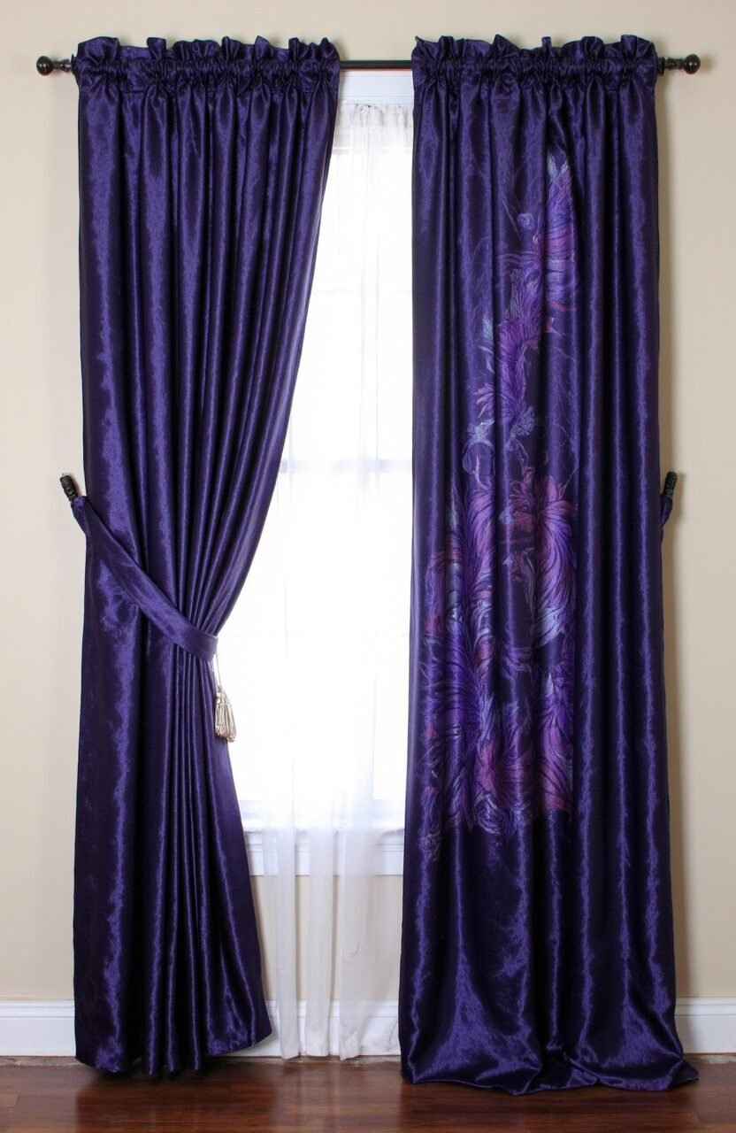 Deep purples and blues intertwine in these curtains, reminiscent of a starry night. They add a touch of mystery and elegance to any room.