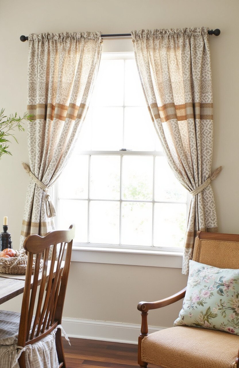 The Rustic Charm Batik Drape offers a cozy, farmhouse feel with its muted tones and simple patterns.