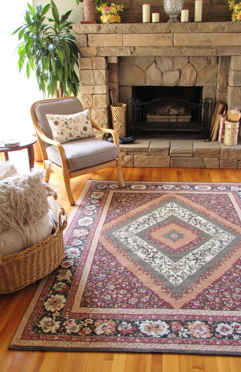 Layering these rugs can enhance the cozy, cabin-like feel. This style is perfect for living rooms or bedrooms that need a touch of warmth and comfort.
