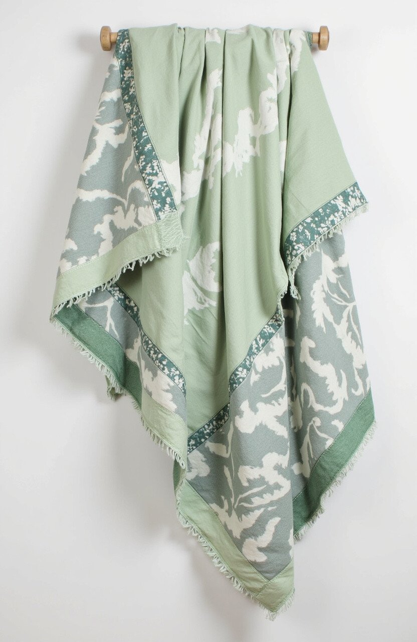 The Elegant Eucalyptus throw is all about understated luxury. Its soft greens and grays are soothing and sophisticated.