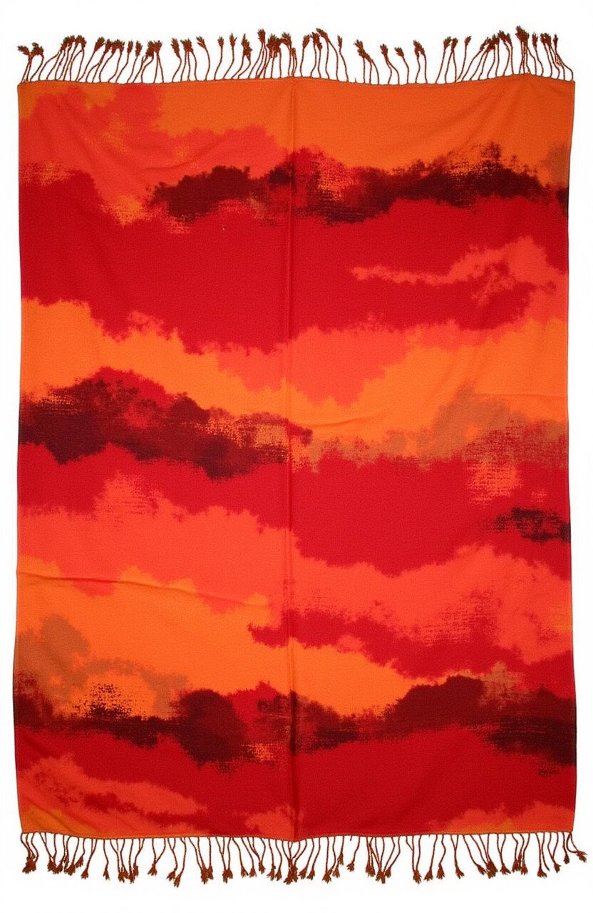The Fiery Sunset throw captures the drama of a setting sun. Its reds and oranges are bold and vibrant, making a statement in any room.