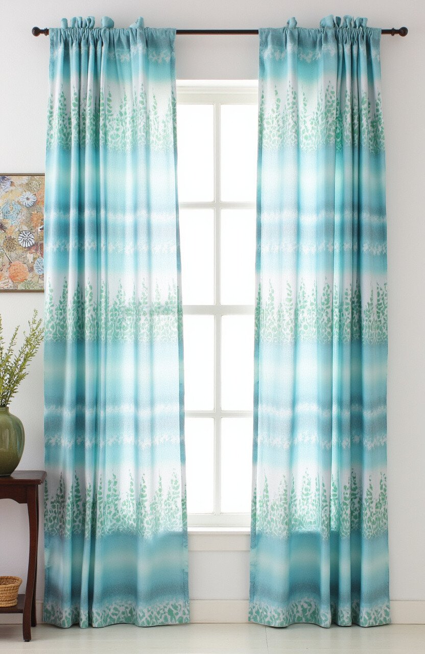 Feel the coolness of the ocean with Ocean Breeze curtains. Their blue and green patterns are reminiscent of waves. These are perfect for creating a calming atmosphere.