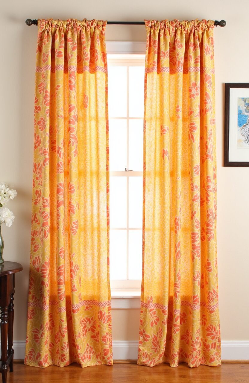 Sunrise Harmony curtains are like waking up to a beautiful morning every day. Their warm hues of orange and yellow spread cheer and warmth. They add a cozy feel to living rooms or bedrooms.