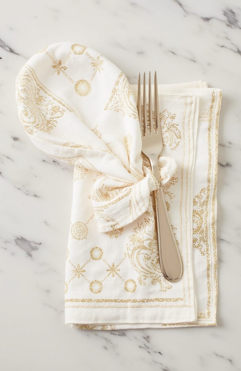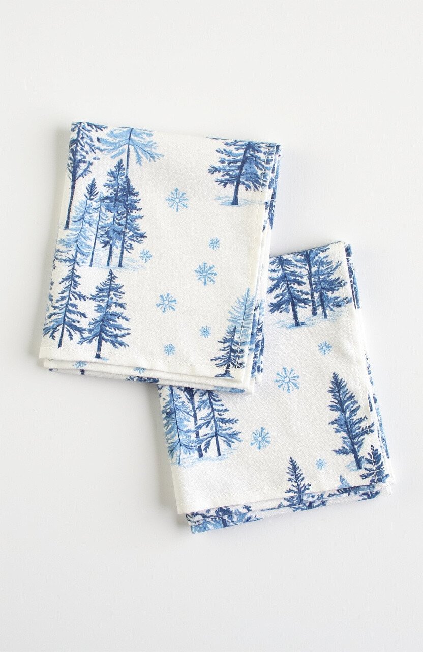 Create a snowy scene with napkins that feature snowflakes, pine trees, and winter whites. These napkins set the stage for cozy winter dinners.