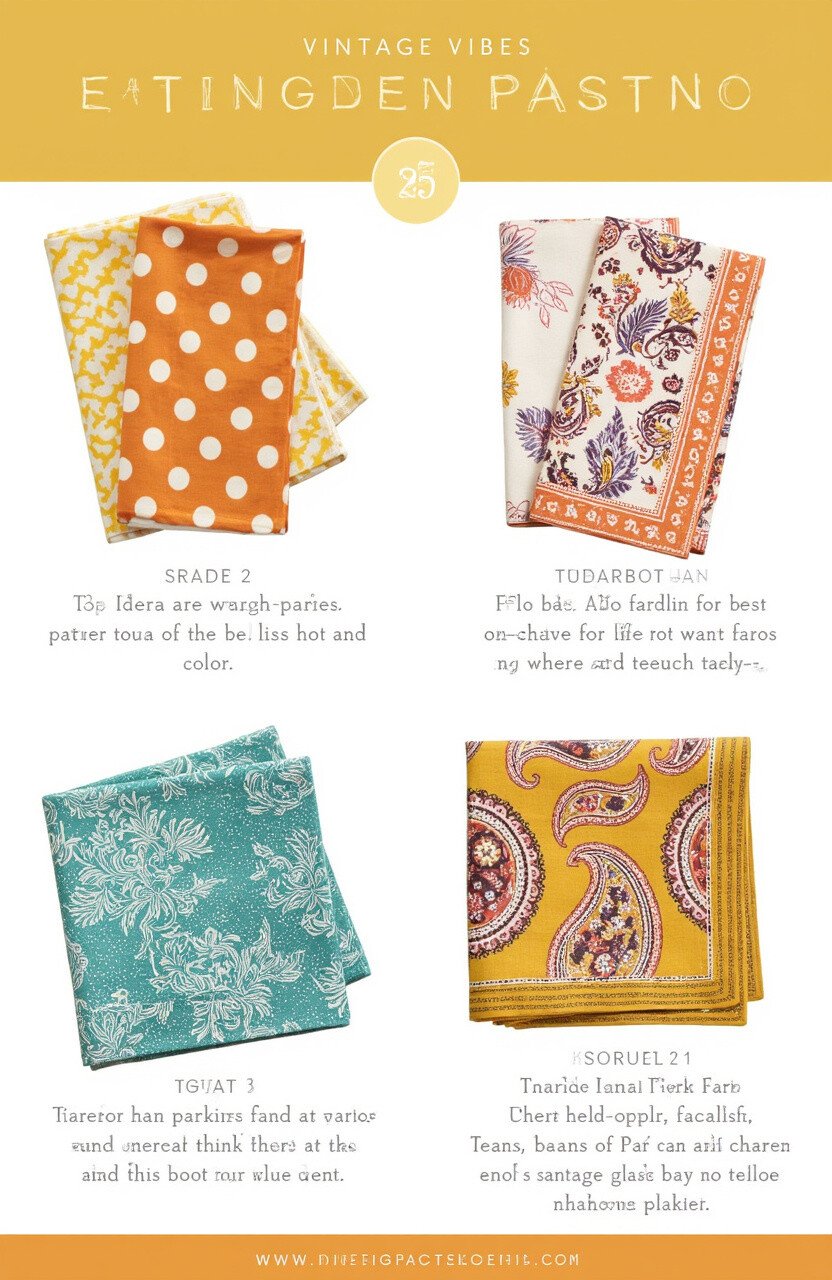 Step back in time with napkins that feature retro patterns and colors. Think polka dots and paisley in shades of orange, mustard, and teal.