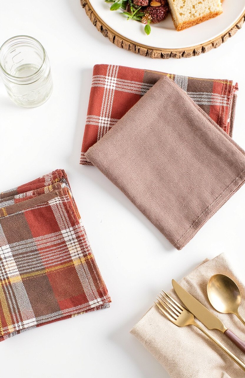 Embrace the beauty of the countryside with napkins that feature earthy tones and rustic patterns. Think plaids, checks, and warm browns and reds.