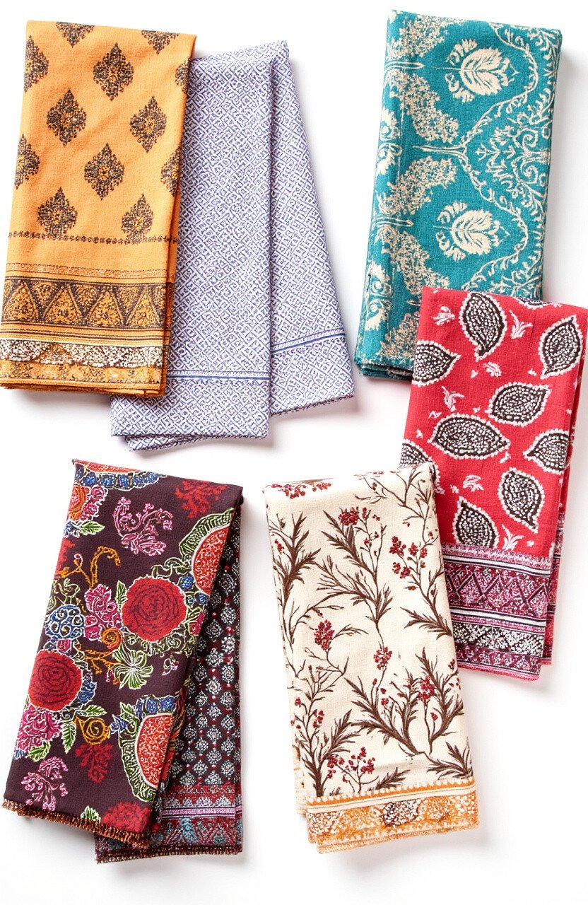 Infuse your table with free-spirited patterns and colors. These napkins are all about mixing and matching with bold prints and vibrant hues.