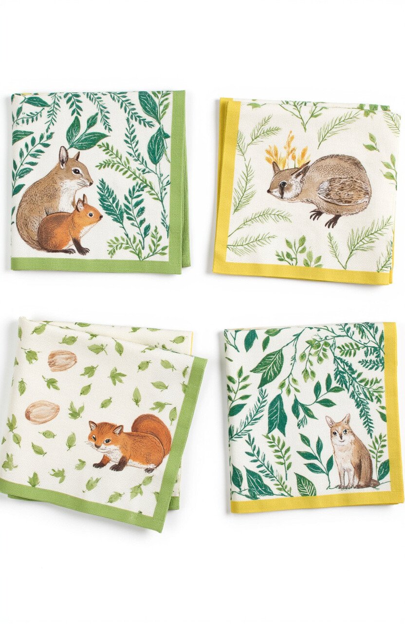 Adventure into the forest with napkins that feature woodland creatures and leafy greens. Squirrels, owls, and foxes add a playful touch.