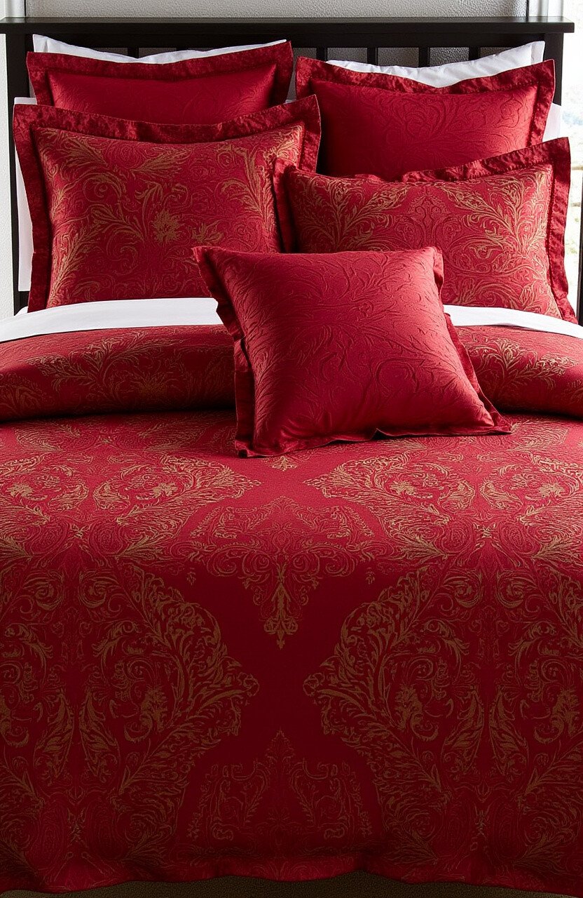 Make a bold statement with this classic red batik comforter set. The rich red color and detailed patterns create a dramatic, luxurious look.