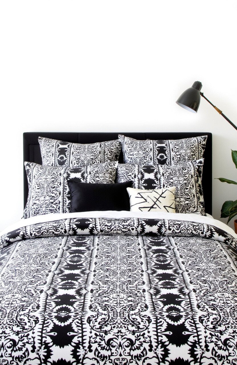 If you prefer a minimalist style, this monochrome batik bedding set is a must-have. Black and white patterns create a clean, sophisticated look that’s timeless.