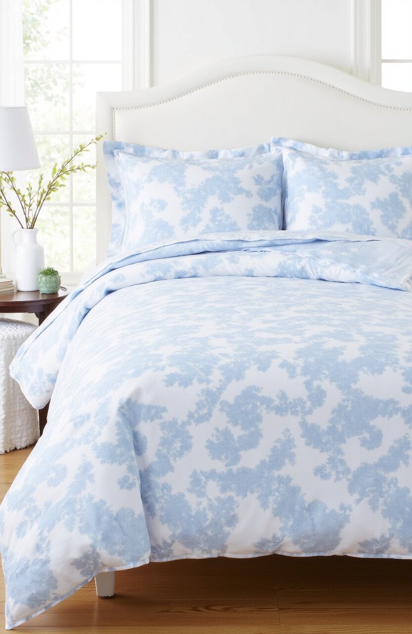 Imagine sleeping on a bed of clouds with this ethereal batik set. Soft blues and whites swirl together in a dreamy pattern that feels light and airy.