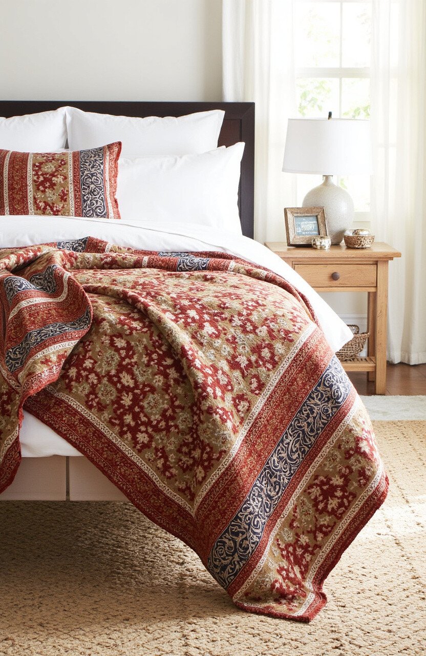 Perfect for those who love eclectic styles, this quilt can transform your bedroom into a vibrant, personal haven. Mix and match with vintage decor for a cohesive look. It’s a unique piece that feels like an heirloom, yet it’s priced for modern budgets.