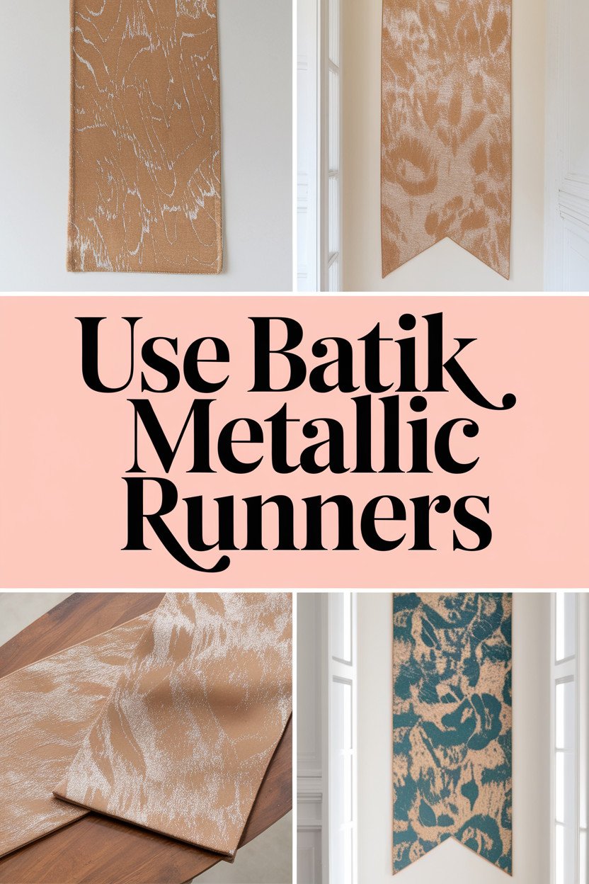 Layering batik metallic runners with other fabrics can create a rich, textured table setting. Try placing a soft tablecloth or placemats beneath the runner; this contrasts beautifully with the shimmering top layer. This idea allows you to mix and match colors and patterns, giving your table a personalized touch.